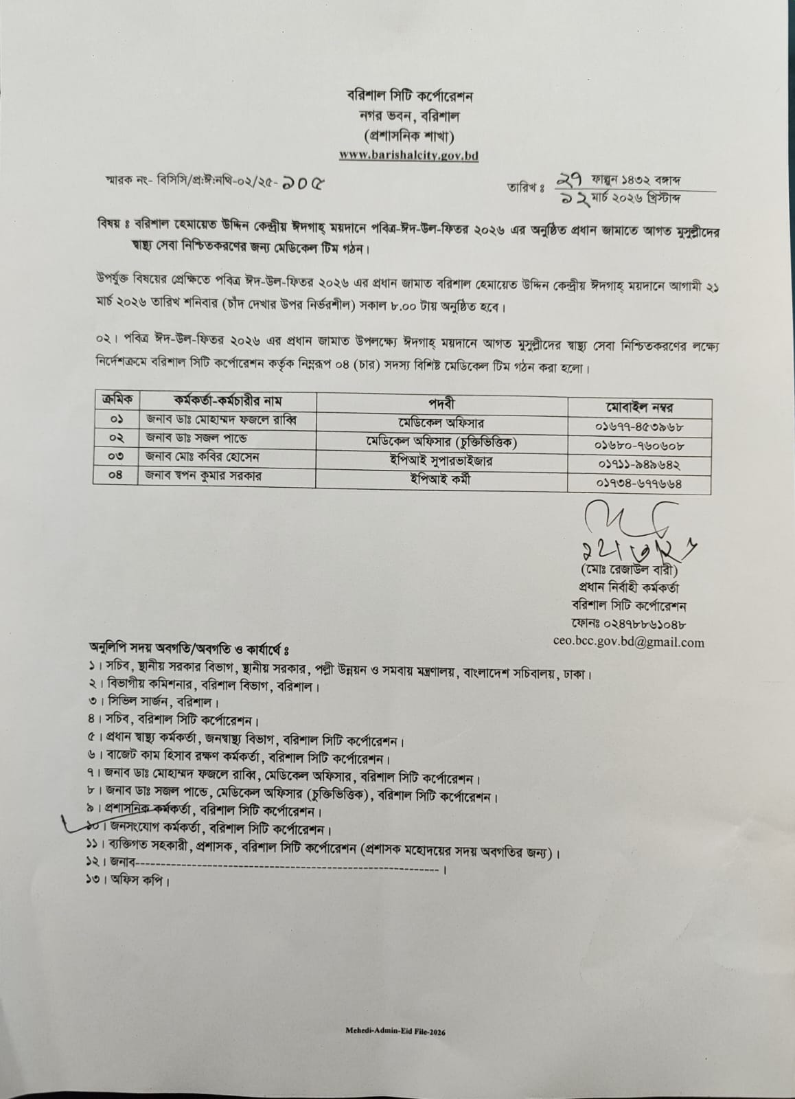 অফিস আদেশ ১২/০৩/২৬