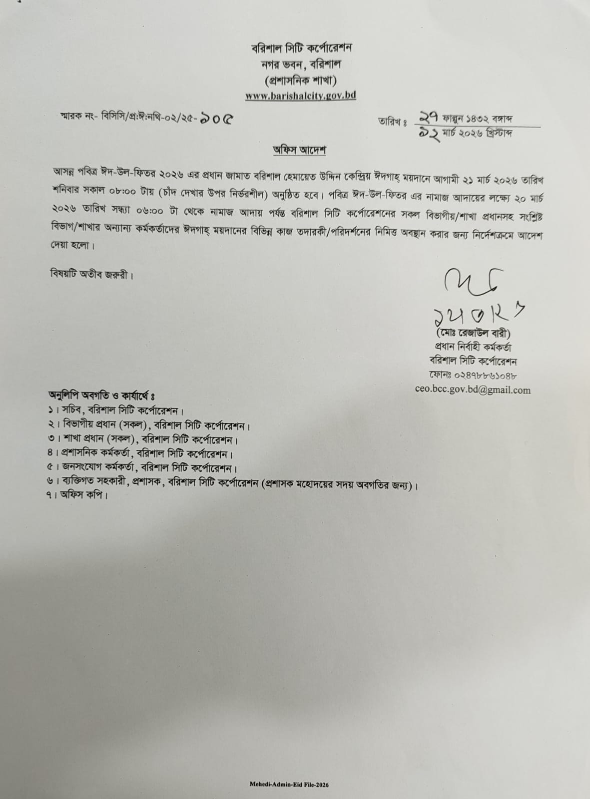 - ঈদ-উল-ফিতর ২০২৬ এর প্রধান জামাত সংক্রান্ত