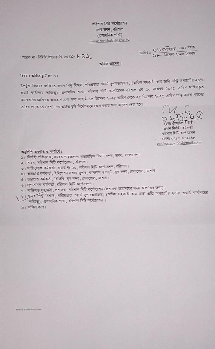 - বহিঃ বাংলাদেশ ছুটি পিন্টু বিশ্বাস