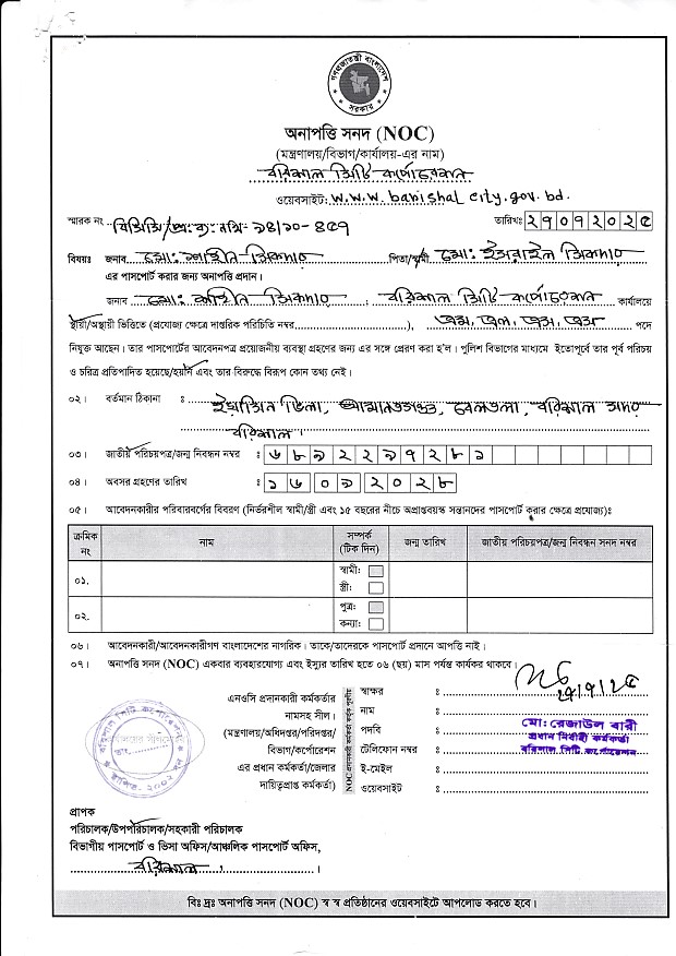 NOC মোঃ শাহীন সিকদার